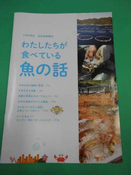 明日,「わたしたちが食べている魚の話」というリーフレットを全校の児童が持ち帰ります。小学5年生 社会科副教材となっていますが,2学期に全校で『魚』についての学習をしましたので,参考の教材としてお家でもご活用ください。