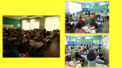 ★1年生の教室では,おかずのおかわりにたくさんの子が並んでいました。