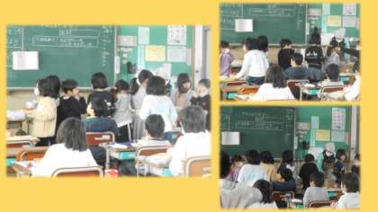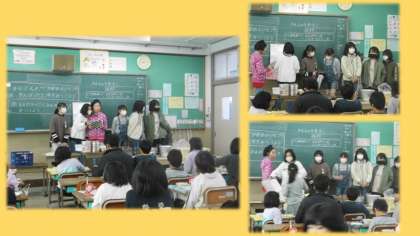 ★1年生の教室では,パンのおかわりにたくさんの子が並びにきました。また,5年生が総合的な学習の話をしに来てくれました。