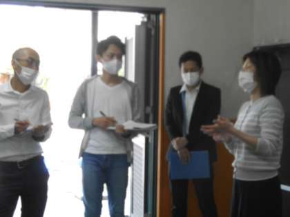 新しく来られた教職員の方々を対象にして,サービスホール(子どもたちが給食をとりに来るところ)で研修を行いました。