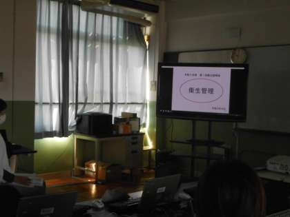 14日(水)からの給食開始に向けて,研修を受けました(献立説明会)。