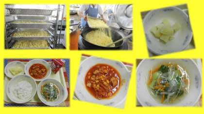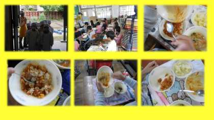 「きゅうしょくのこふきいもがこしょうがかかっていておいしかったです。チキンライスのぐがおいしかったです。いつもありがとうございます。」(2−3)