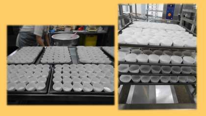 ★「ういろう」は,江戸時代から伝わる和菓子です。米粉と黒砂糖・砂糖をまぜてスチコンで蒸して作りました。「ういろう」のもちもちした食感と黒砂糖の甘味を味わいました。嵯峨野校では,680個作りました。