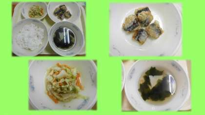 ★今日は,5月分の「和(なごみ)献立」です。若竹汁は,春が旬のわかめとたけのこを使っています。わかめとたけのこは,相性のよい食べ物で,「であいもん」と言われています。それぞれの食感を楽しんでいただきました。