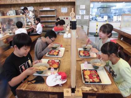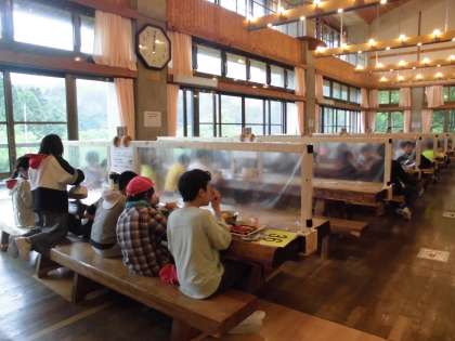 感染予防の対策をしっかりとしたテーブルに座って,みんなでおいしくいただきました。