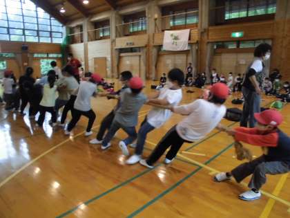 学年の中で綱引き開会は初めてだったそうです。みんな真剣で,大盛り上がりでした。