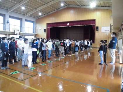 学校に到着して,退所式を行いました。「校長の話」の中で,子どもたちの見つけた「楽しさ」や自分たちが頑張ったところを思い出としてだけではなく,これから伸ばしていく「力」として,その力を使い続けてレベルアップしてほしいという話をしました。くしくも,「児童代表の退所式の言葉」にも,これからも学校生活の中でこの経験を生かして頑張っていこうと同じ趣旨の言葉があり,うれしく思いました。