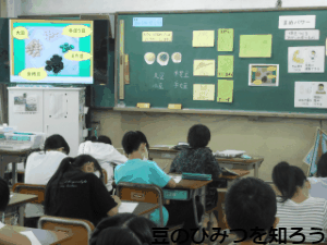 今週,4年生に「豆のひみつを知ろう」をテーマに学習しました。