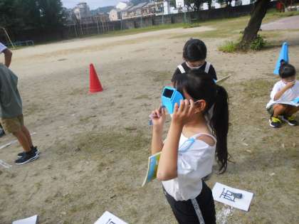 太陽の方位について調べました。9時,12時,2時と観察し,どのように変わっているのかを確かめました。雲が出てきてなかなか観察できないこともありましたが,太陽の動きを見て感じることができました。