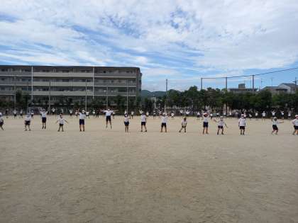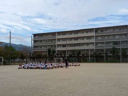 今日は運動場で団体競技の練習でした。おおよその流れができてきたので,自分たちで動けるように通して練習しています。練習を重ねるにつれ,だんだん動きが揃うようになってきています。