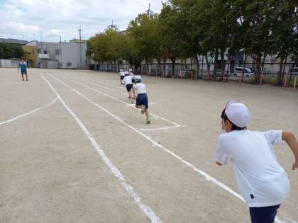 今日のスポーツフェスティバルの練習は,100m走と団体競技の練習でした。3年生にとってははじめての100m走でしたが,最後まで一生懸命走り抜けていました。待っている子どもたちからは,「がんばれ」という声がたくさん聞こえてきました。