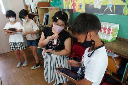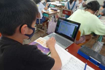 算数科の学習では,GIGA端末を活用して,自分の考えたことを説明する,ということに取り組んでいます。