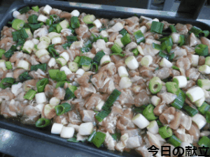 ★鶏肉のてり焼き(スチコン)は,しょうゆやみりんで味つけした鶏肉と白ねぎをスチームコンベクションオーブンで焼きました。鶏肉のやわらかさと白ねぎの甘味を味わってください。