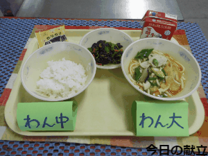 「くろだいずとほうれんそうのごまにがおいしかったです。」(1−3)
