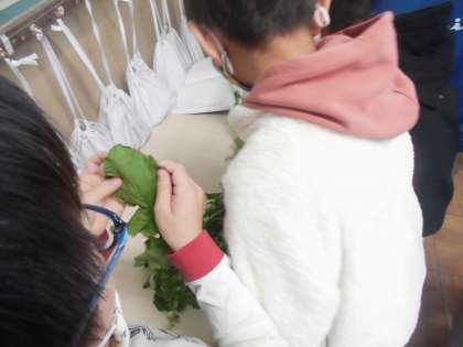 3年生社会「農家でつくられるもの」の学習では,京都市でつくられた野菜を観察しました。野菜を触ってみて,子どもたちは「ツルツルしている」「重たい」などいろいろな感想を話していました。これからは,どうやって野菜が作られていくのかを学習します。
