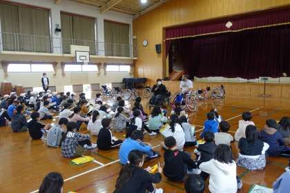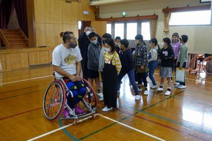 車いすバスケットの体験の後は,体験した内容や日常生活について疑問に思っていることを聞きました。
