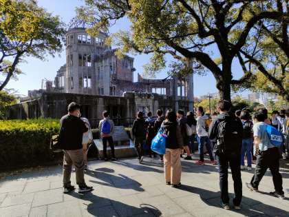 原爆ドームの圧倒するような雰囲気を感じながら,見学していました。石碑を一生懸命読んでいる子や慰霊碑をじっと見ている子など,それぞれの「思い」をもって見学していたようです。