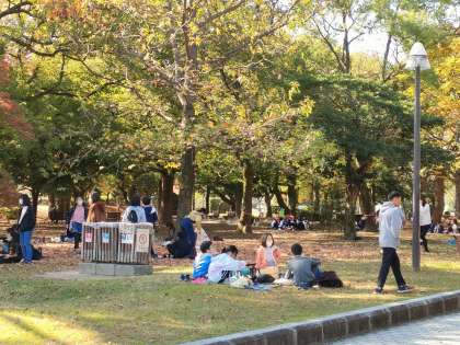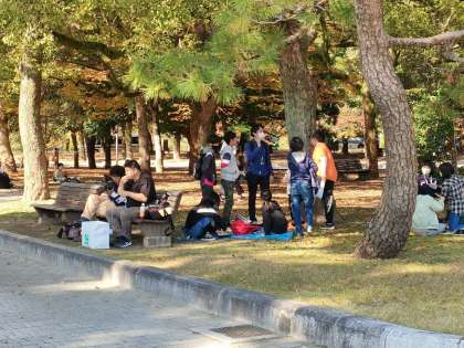 公園内でお弁当を食べました。お天気もよく,ポカポカ陽気で気持ちがいいです。みんなで野外で食べるお弁当も久しぶりです。