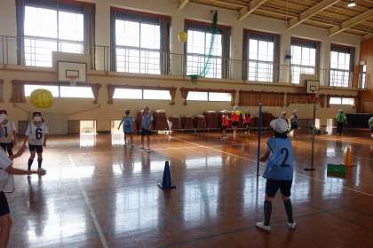 初めてのことばかりで,どうすればパスがつながるのか,自分の思っている方向にボールを返すにはどうすればよいのか,と,一人一人が試行錯誤をしながら進めています。