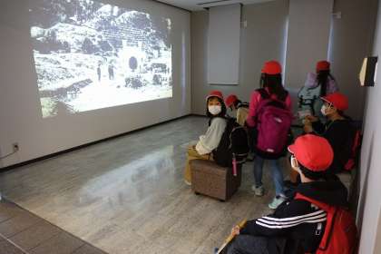 映像資料や体験コーナーでは,順番を守ったり譲り合ったりする姿も。一般の方もいらっしゃったので,マナーを守って見学することができました。