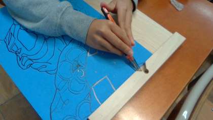 久しぶりに彫刻刀を使って,「浮世絵」を彫り進めています。