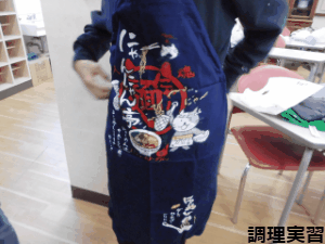 自分たちで作った手作りのエプロンを使いました。