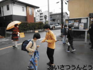 先週,一週間,生活安全委員会が中心になり,あいさつうんどうをしました。