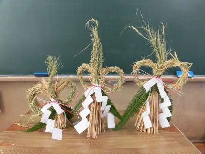 今年作ったしめ縄は,「めがね」と呼ばれるしめ縄です。