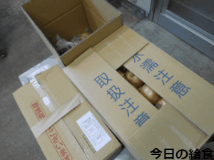 ★ふりかけ(しそ)・・・緊急時物資として学校に備えておいたふりかけです。食べるごはんの量によっては,全部かけると塩からくなります。自分の好みに合わせて,量を調整しながら食べました。