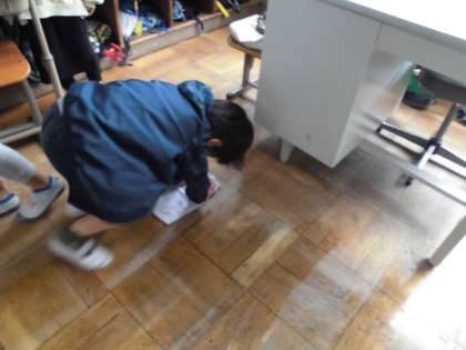 重い机は2人で協力して運んだり,ぞうきんで床がピカピカになるようにふいたり,1年生で学んだことを生かして,一生懸命そうじをすることができました。