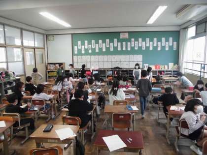 じぶんたちが育ててきたチューリップの絵をよく見て,自分ががんばったところや友達の良いところを見つけていました。初めてのコンテでの作品がとても上手にできていました。
