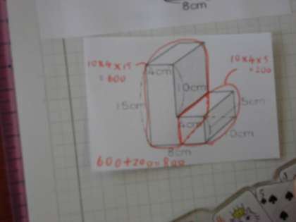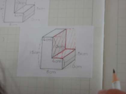 今日は,L字がたの形の体積の求め方を考えました。