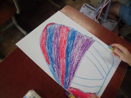 図工で,ふしぎなたまごを自分たちで考えて描いています。たまごから,色々な色になっており,たまごから何が出てくるのかとても楽しみです。
