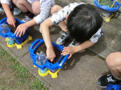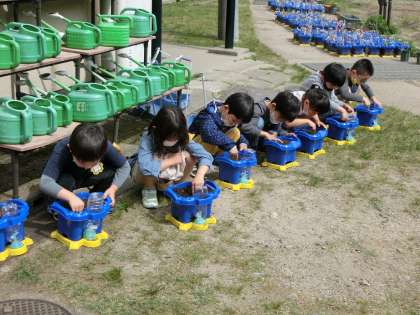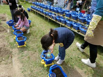 1年生は,あさがおのたねをまきました。