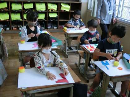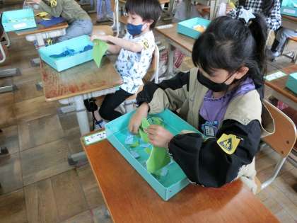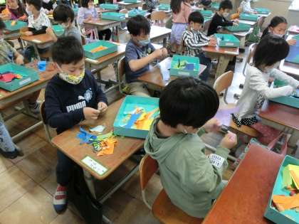 図画工作科で,紙をそっとやぶいたりちぎったりしました。