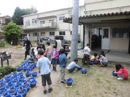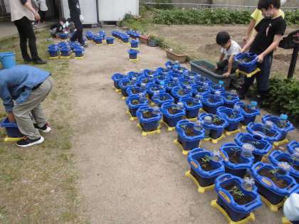 今日,トマトの苗をそれぞれの植木鉢に植えました。これから,毎日水やりをしたり成長を観察したりして「おいしいやさい」を育てることができるように頑張っていきます。