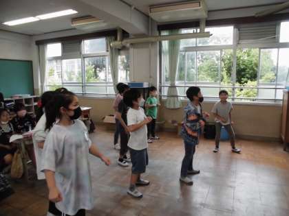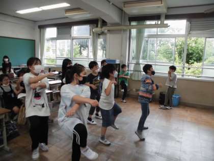 雨の日は外に遊びに行くことができません。この日は動画を見てダンスをしました。誰かが踊っていると,だんだん人が集まってきて,みんな楽しそうでした。