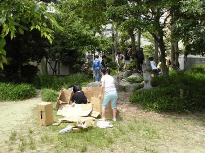クラスの友達とグループを組み,段ボールを使って秘密基地を作製しました。