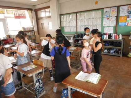 『外国語活動』の学習では,自分の様子をジャスチャーを交えて伝え合いました。