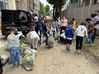 ゴミ袋に入れる作業や道具を片付ける作業など最後まで自分にまかされた仕事を責任もって取り組んでくれました。ドロドロになった軍手からも今日の頑張りが伝わってきました。