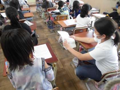 家庭で出るごみの種類や量を調べたことを,交流しました。「燃えるゴミ」や「プラスチックごみ」が多いことに気づいていました。また,学校でも分別してごみを捨てているから,そのごみはどうなっているのかなとまた新たな疑問が出てきました。