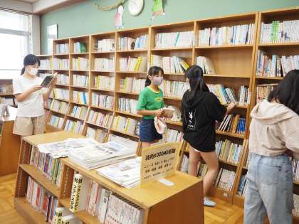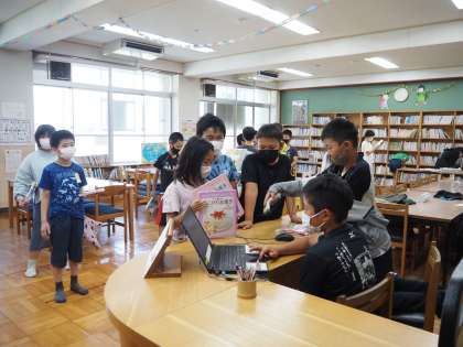 国語科では,図書室に行き,本に親しむ時間があります。「今週は何よもうかな〜」「おもしろそうな本だな!」と読書に対する意識はとても高いですね。
