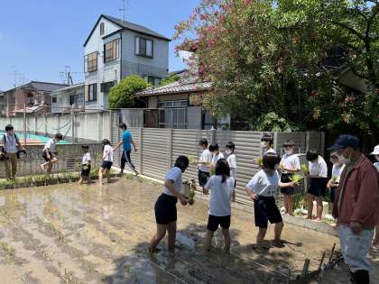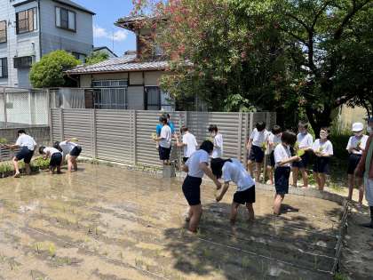 田植えもいよいよ最終クラス。2組の田植えの様子です。