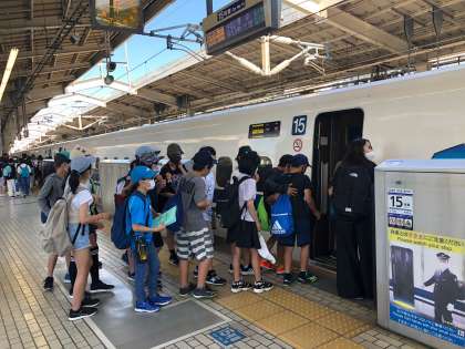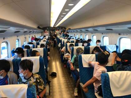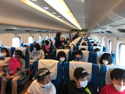余裕をもって新幹線に乗り込みました。初めて新幹線に乗ったと言っている子もいて、楽しそうにおしゃべりタイムです。駅でも新幹線内でもしっかりとマナーを守っていた6年生です。
