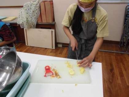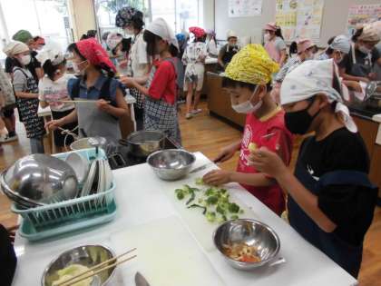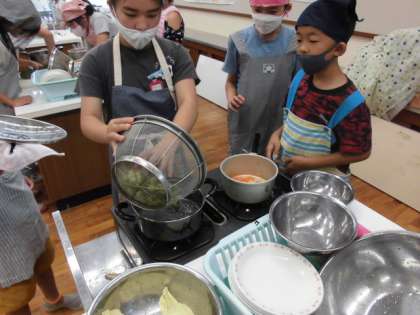 野菜を切ったり,ゆでたり,どんな順番で進めていくとよいか考えながら調理実習を進めました。