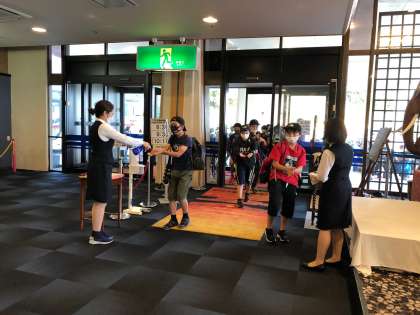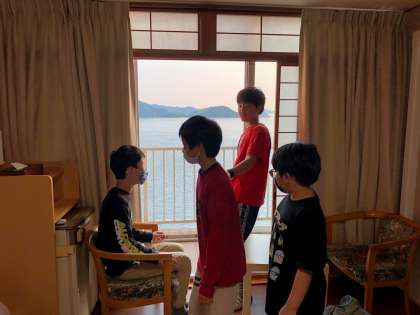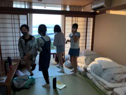 消毒をして館内に入り、それぞれの部屋に行って荷物整理をしました。部屋からの眺めも綺麗です。