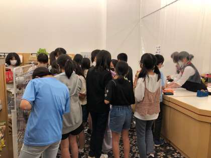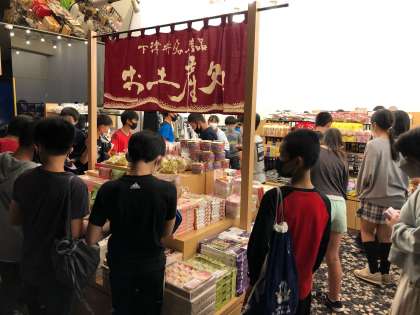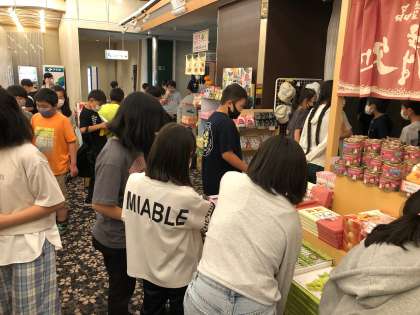 ホテルでのお買い物タイムです。『これは、〇〇さん用』と、友達と相談しながらお土産を買っていました。倉敷での買い物も予定しているようでした。