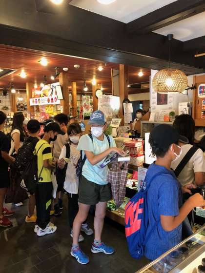 倉敷美観地区に到着しました。グループ写真を撮った後、グループ活動でのお買い物タイムです。『これ、従兄弟の分!』など、渡したい相手を思い浮かべながらのお土産選びは、素敵ですね。