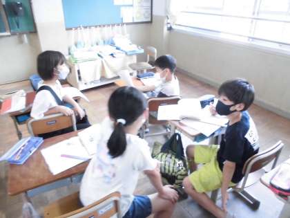 戦争中と戦争後の様子のちがいを考え,それぞれ見つけたちがいを伝え合いました。また,最後の場面に「一つだけ」という言葉がでてこない理由を考えて,交流しました。