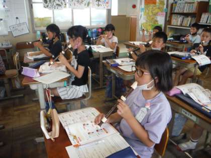 タンギングに気を付けながら,リコーダーを演奏しました。少しずつ上手になってきています!!